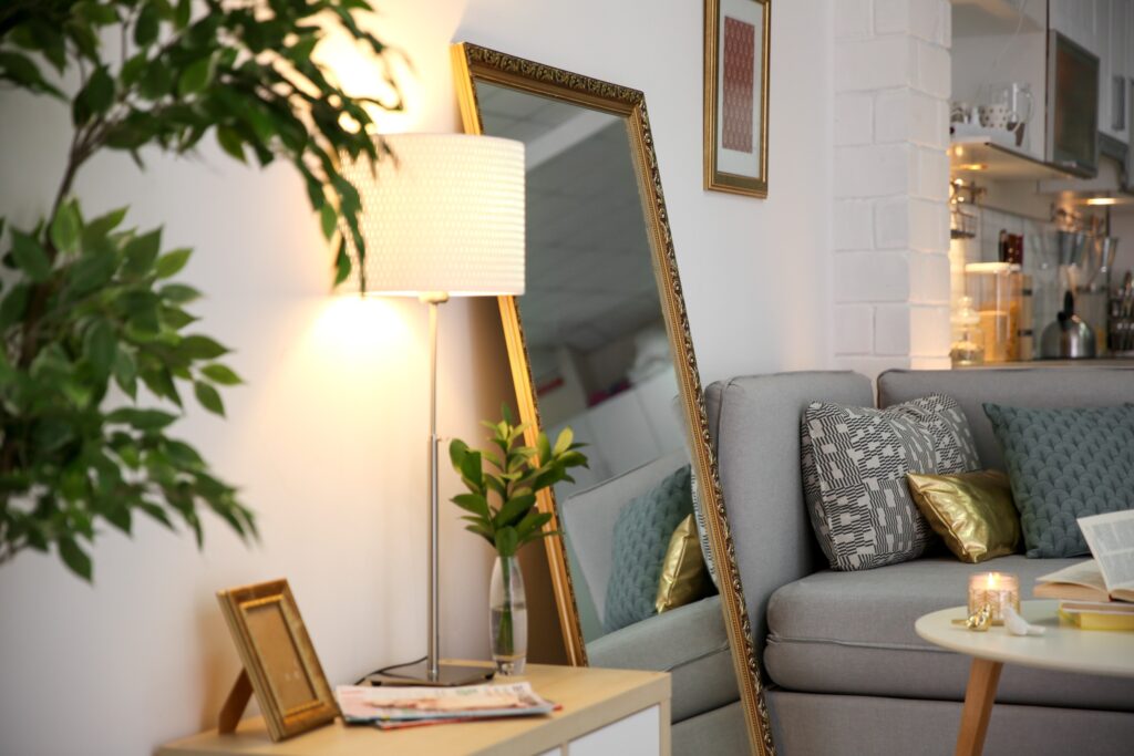 Dark walls or heavy décor can make even a well-lit room feel smaller. If repainting isn’t an option, using mirrors to reflect light or adding lighter accents like cushions or rugs can brighten things up instantly.